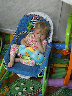 Lea-Celine was with us all morning also.. we weren't really given instructions on what she could or could not so so for most of the morning I tried to entertain her in her chair. Later I took her into the hallway to play "chicken" in a stroller with Ion in a walker.. We had a great time!